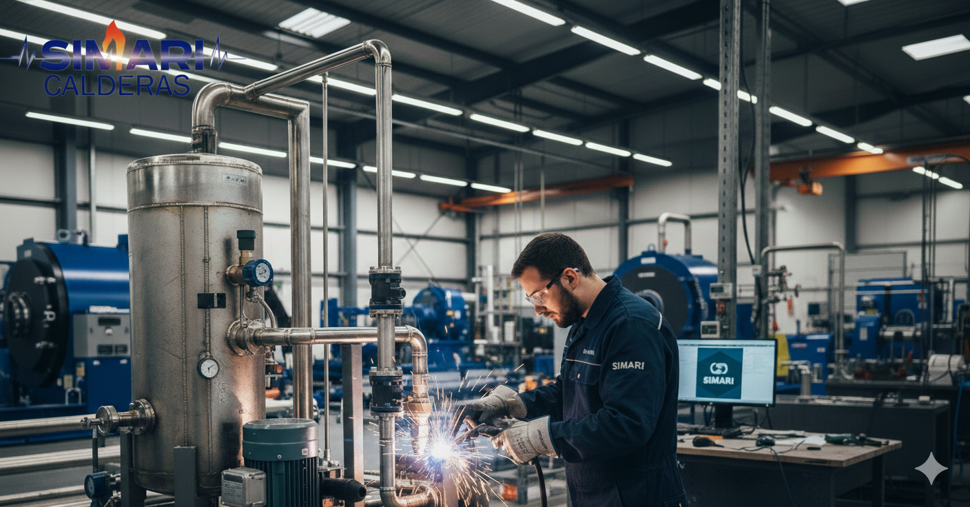 Para que una caldera alcance su máxima eficiencia, necesita un entorno de equipos periféricos diseñados bajo estándares rigurosos. En SIMARI, fabricamos componentes robustos que optimizan el ciclo del agua y el vapor, garantizando que cada caloría generada se aproveche al máximo y que su equipo principal esté siempre protegido.